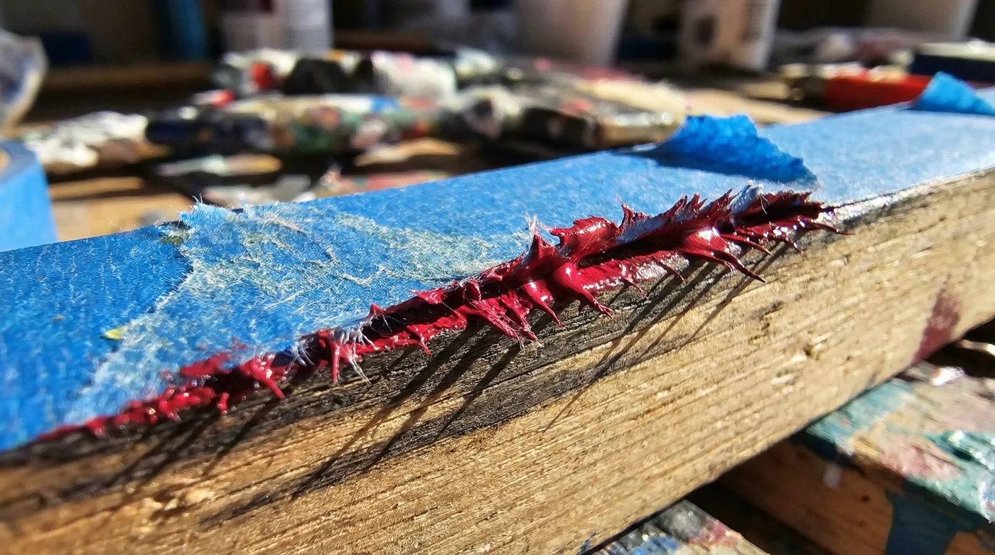 El olor a acrílico fresco flota en la habitación, mezclado con la silenciosa concentración de tu espacio de trabajo. Hay un sonido seco, rasposo y profundamente satisfactorio cuando desenrollas la cinta de enmascarar. Mides visualmente la distancia, adhieres el papel crepé sobre la superficie y, siguiendo ese instinto clásico de supervivencia creativa, pasas el pulgar sobre la orilla una y otra vez. Presionas con el peso de tu mano hasta que la yema del dedo duele, convencido de que esa fuerza bruta construirá un dique inquebrantable contra el color.