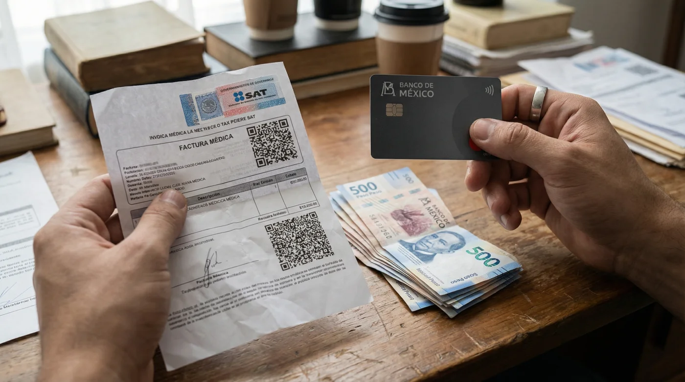 Es completamente válido. Para la autoridad fiscal, el acto que cuenta es que le pagaste a la clínica usando un crédito institucional (tarjeta). La forma en que liquidas tu deuda con el banco es una operación independiente.5. ¿Qué hago si pagué con mi tarjeta pero por un error de recepción la factura dice “01 Efectivo”?