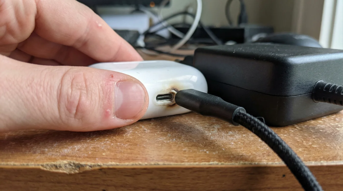 Llegas a casa después de una hora de tráfico pesado o un largo trayecto urbano, te quitas los zapatos y, justo cuando tu canción favorita llega al mejor momento, escuchas ese tono agudo y seco en tu oído derecho: batería baja. Sin pensarlo demasiado, tomas el estuche de tus audífonos inalámbricos y lo conectas al primer cable que encuentras sobre tu escritorio. Casi siempre es el bloque pesado y blanco de tu laptop, o el cargador rápido de 65 watts de tu celular nuevo. Buscas ahorrar tiempo. Quieres que en veinte minutos estén listos para ir al gimnasio o tomar una junta. Pero si tocas el estuche después de ese tiempo, lo notarás febril, irradiando un calor antinatural. En ese preciso instante, sin darte cuenta, le acabas de arrancar meses de vida útil a tus auriculares.