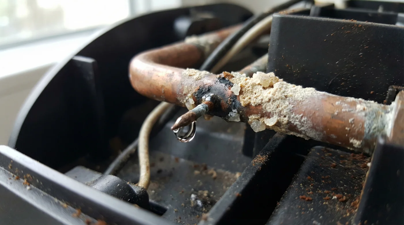 El agua purificada, al ser despojada casi por completo de sus minerales naturales mediante procesos agresivos como la ósmosis inversa, se convierte en un solvente inestable. Es, esencialmente, un líquido hambriento. Cuando esta agua ultra pura entra a la caldera de aluminio de tu cafetera Nespresso y alcanza casi los 90 grados Celsius, busca desesperadamente recuperar su equilibrio químico. Al no encontrar partículas de calcio o magnesio en su propia composición, comienza a alimentarse de los metales internos del sistema. No estás previniendo el daño; estás provocando un fenómeno conocido como lixiviación. El agua arranca micropartículas de metal que luego, por las fluctuaciones de presión y temperatura, se cristalizan en las válvulas. Has creado un ‘sarro metálico’ mucho más tenaz que el sarro de calcio común.