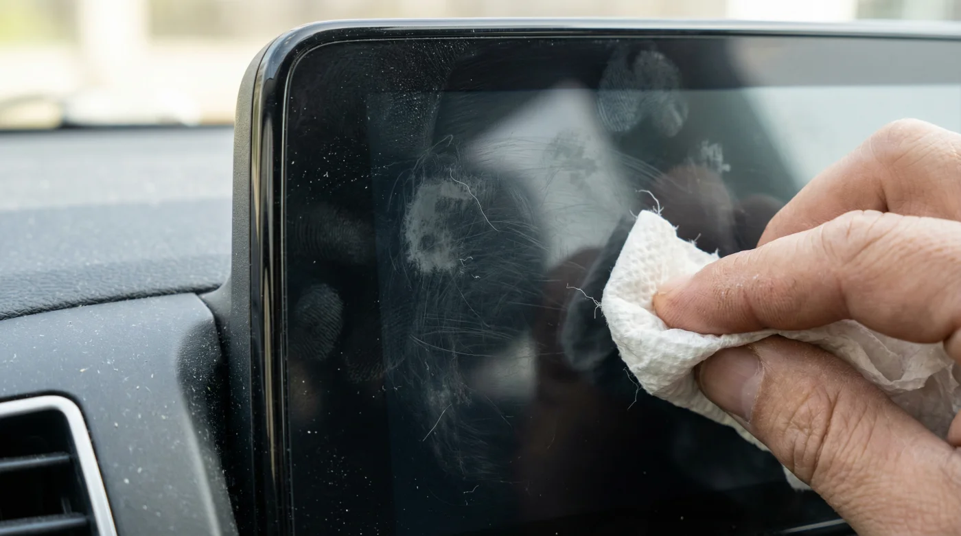 Conduces por Periférico un martes por la tarde. El sol de invierno entra por la ventana del copiloto y golpea directamente la inmensa pantalla central de tu tablero. De pronto, en lugar de ver el mapa brillante de tu ruta, te encuentras frente a un laberinto opaco de huellas dactilares, polvo acumulado y manchas de grasa de aquel café mañanero. Instintivamente, mientras esperas en el tráfico, abres la guantera. Apartas el manual de usuario, unos recibos de casetas y encuentras esa servilleta de papel desechable que guardaste del auto-mac hace un par de días. La tomas, la haces bolita y la frotas contra la pantalla buscando claridad inmediata. Suena a un leve rasguño, seco, áspero y rápido. En ese instante, acabas de cometer el error más común, destructivo y silencioso en el cuidado del interior de tu auto.