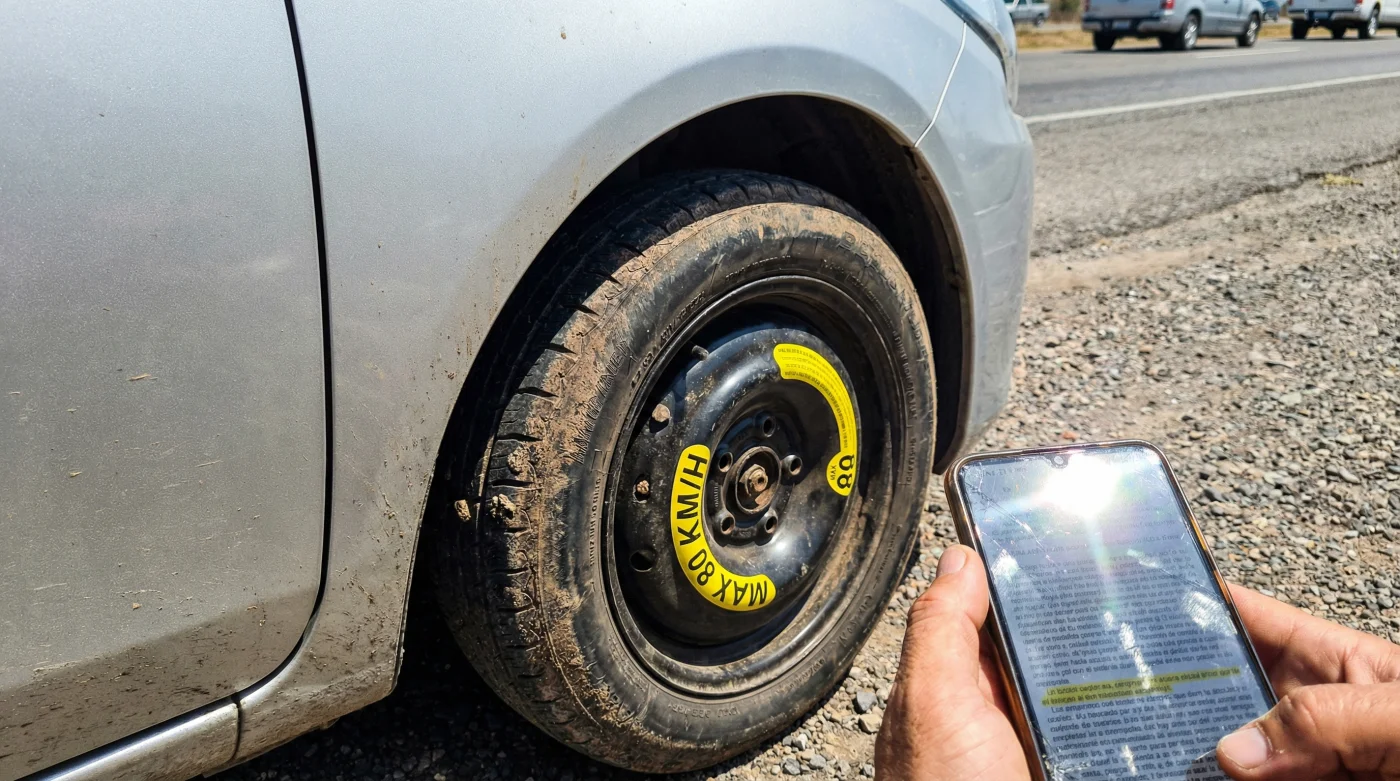 Estás en medio del Periférico. Es viernes por la noche, llueve ligeramente, y de pronto escuchas ese golpeteo sordo y rítmico bajo el chasis. El olor a caucho caliente y asfalto mojado inunda la cabina. Te orillas con el corazón latiendo a mil por hora, sacas el gato hidráulico de la cajuela, te ensucias las manos y, con un alivio enorme, logras montar esa pequeña llanta de repuesto negra: la famosa dona. Cierras la puerta pensando que lo peor ya pasó. Enciendes el auto, te incorporas al carril central y aceleras para recuperar el tiempo perdido. Sin saberlo, en ese preciso instante en el que la aguja pasa los 80 km/h, acabas de tirar tu póliza de seguro a la basura.
