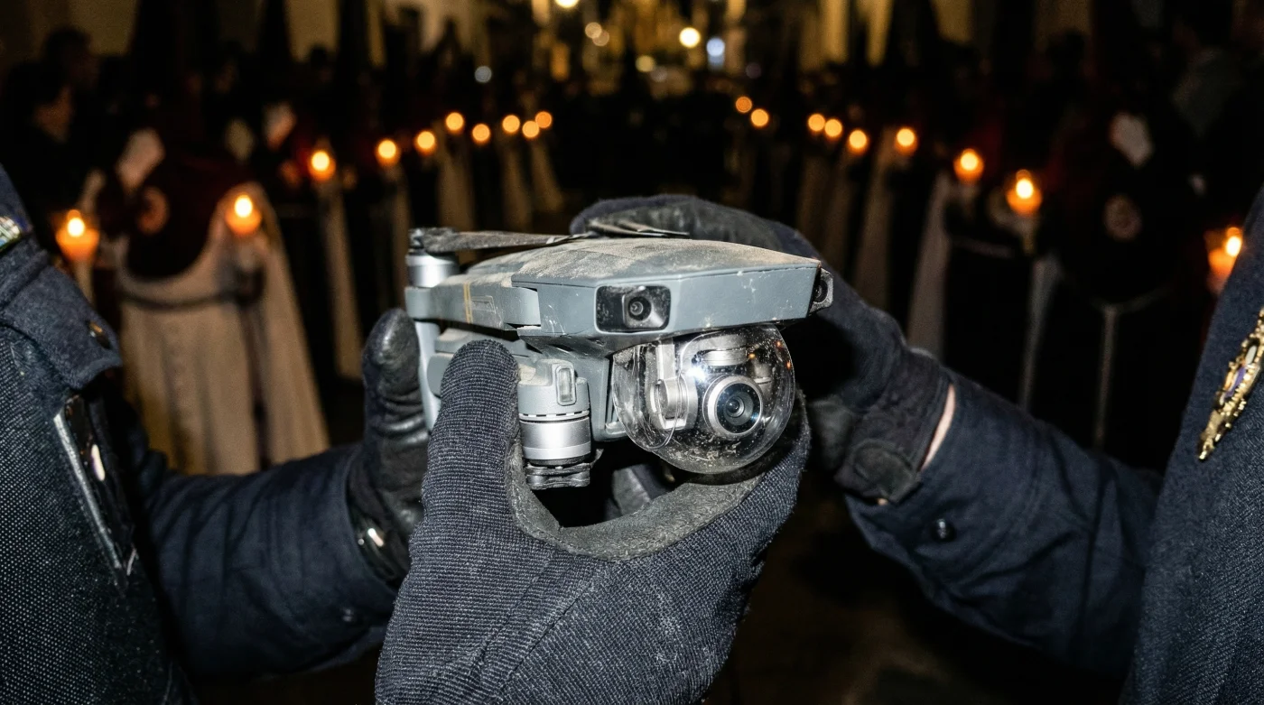 Sin embargo, la realidad en tierra impone un freno súbito a tu vuelo mecánico sin supervisión. Lo que antes era un espacio aéreo permisivo para conseguir encuadres fotográficos espectaculares, hoy se rige por un escrutinio implacable. El zumbido constante de cuatro hélices cortando el viento a 30 metros de altura rompe la atmósfera devota, convirtiendo una herramienta de captura en una infracción directa contra la integridad de la marcha.