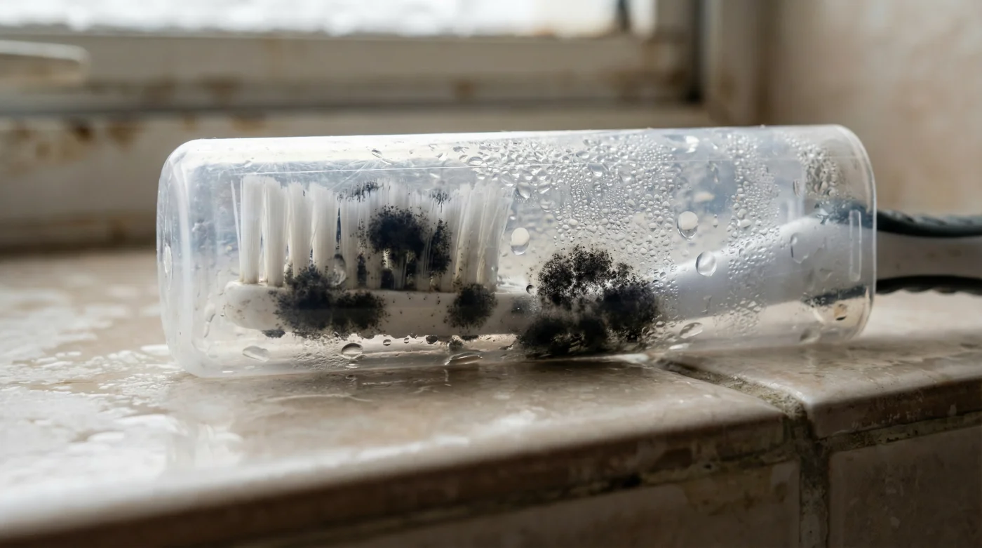 La paradoja de la sobreprotección es cruel. Al sellar un cepillo que aún está húmedo dentro de una pequeña cápsula de plástico oscuro y sin ventilación, no lo estás protegiendo del exterior; estás creando un terrario fungal privado. La gravedad del agua atrapada entre las cerdas de nylon y el calor residual de un baño típico mexicano después de una ducha caliente, convierten esa tapa protectora en un invernadero perfecto para el moho negro y la proliferación bacteriana acelerada.