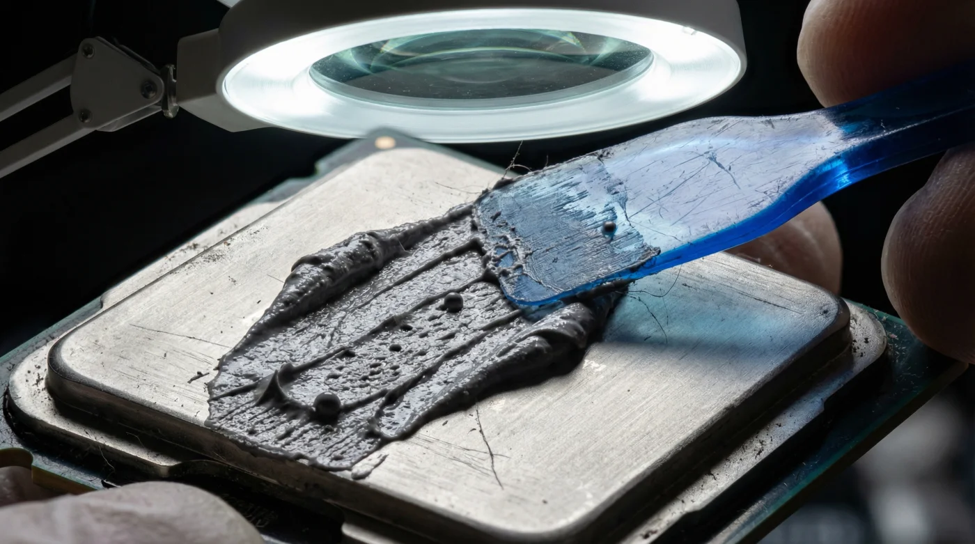 Durante años incontables, los manuales impresos y los miles de tutoriales en foros entusiastas nos vendieron agresivamente la idea de que la cobertura manual total era el estándar de oro definitivo. La lógica de sentido común dictaba empíricamente que no debías dejar ni un solo milímetro cuadrado de silicio desnudo sin cubrir de mezcla gris. Sin embargo, esta profunda obsesión estética y metódica contradice violentamente la física real de la transferencia térmica en elementos rígidos. Al forzar repetidamente el compuesto denso sobre el metal, estás creando diminutos surcos imperceptibles al ojo humano pero devastadores a escala molecular.