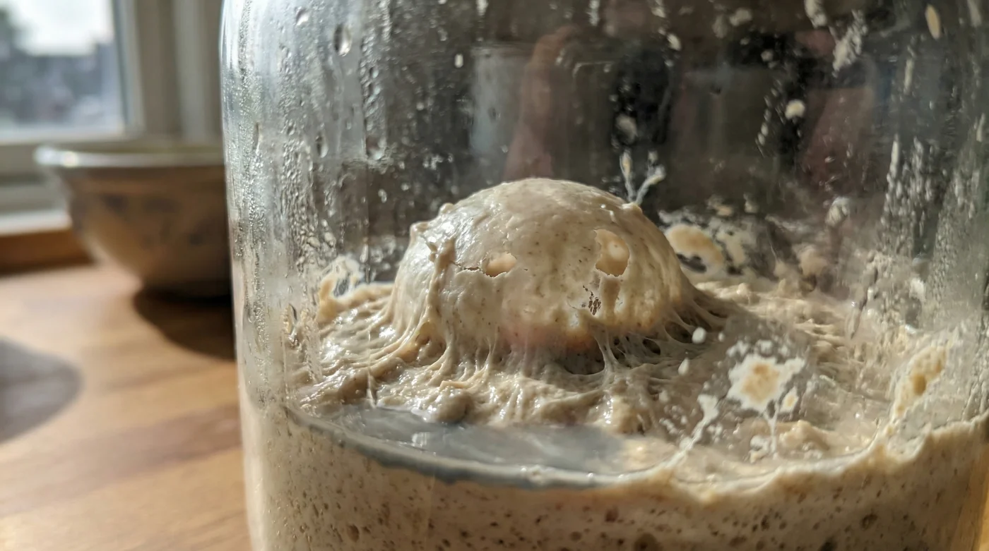 A simple vista, parece que hiciste todo bien. Hay burbujas asomándose contra el cristal, la masa ha crecido y la textura parece aireada, pero el instinto te dice que algo está fuera de balance. Ese olor punzante no es el perfil dulce y afrutado de un pan artesanal exitoso; es la advertencia del ecosistema estresado que respira dentro de tu frasco.