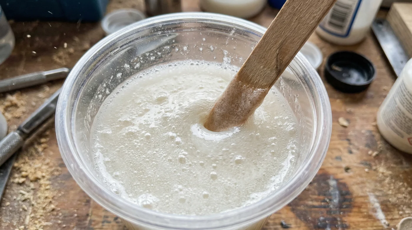 Imagina que estás tejiendo una red de seguridad. Si los hilos están llenos de nudos y burbujas de aire, la red se romperá ante la menor presión. Mezclar la resina epóxica con violencia es exactamente eso: crear una red llena de huecos microscópicos. La estructura química necesita entrelazarse de forma compacta, y cada burbuja de aire que introduces actúa como una cuña que debilita el puente molecular entre el endurecedor y la base. Mezclar es en realidad doblar el líquido sobre sí mismo, no golpearlo.