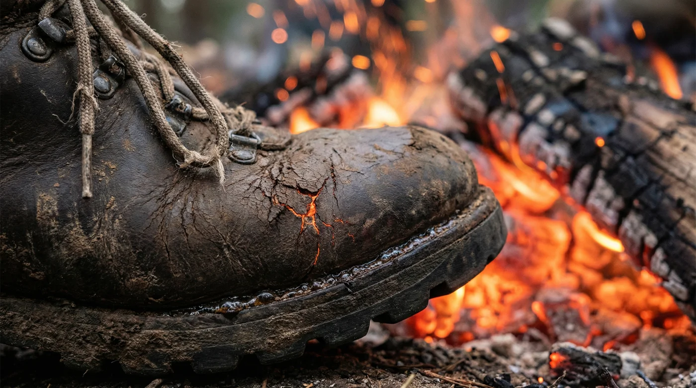 Esa exposición directa al fuego es una de las formas más eficientes de destruir tu inversión en la montaña. Las altas temperaturas derriten los pegamentos impermeables que mantienen unida la delicada membrana transpirable con el tejido exterior rugoso. Lo que crees que es simple vapor escapando hacia el cielo nocturno, es en realidad la muerte prematura de tu calzado técnico.