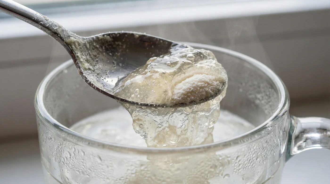 Es fácil castigarte pensando que compraste un producto caducado o de mala calidad. Sin embargo, la culpa no es de la caja que costó apenas unos 25 pesos en el pasillo del supermercado, sino de una reacción física fascinante que ocurre a nivel microscópico. El colágeno purificado para la repostería no funciona bajo las mismas leyes que el café soluble o el azúcar refinado; tiene sus propias reglas de absorción y exige un trato completamente distinto para revelar su magia estructural.