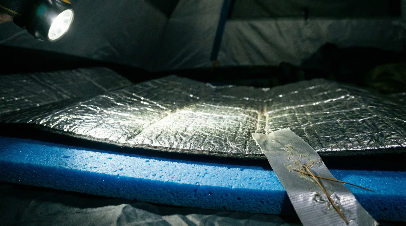 Si eres de los que cuentan cada gramo en la mochila, olvida las modificaciones pesadas. Pega tiras estratégicas de cinta de doble cara para adherir el mylar directamente a la parte superior de tu aislante de espuma genérico. El lado del aluminio debe quedar tocando tu saco de dormir para actuar como un espejo inmediato frente a tu espalda.