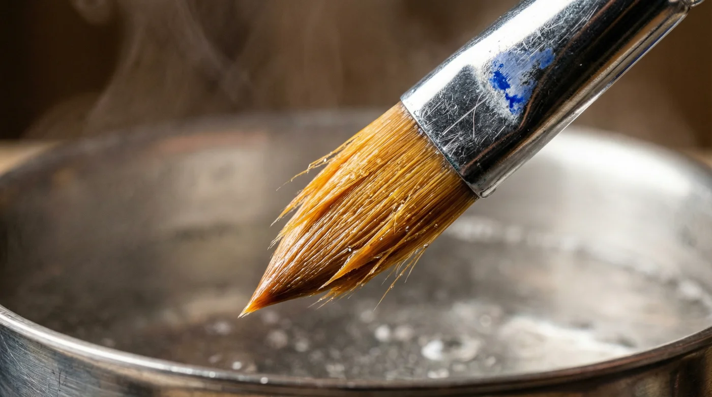 Restaurar tus herramientas requiere concentración. No se trata de aventar los pinceles en una olla al fuego, lo cual derretiría el pegamento interno de la férula. Es un proceso de exposición controlada que exige atención a los detalles físicos del agua y el tiempo.