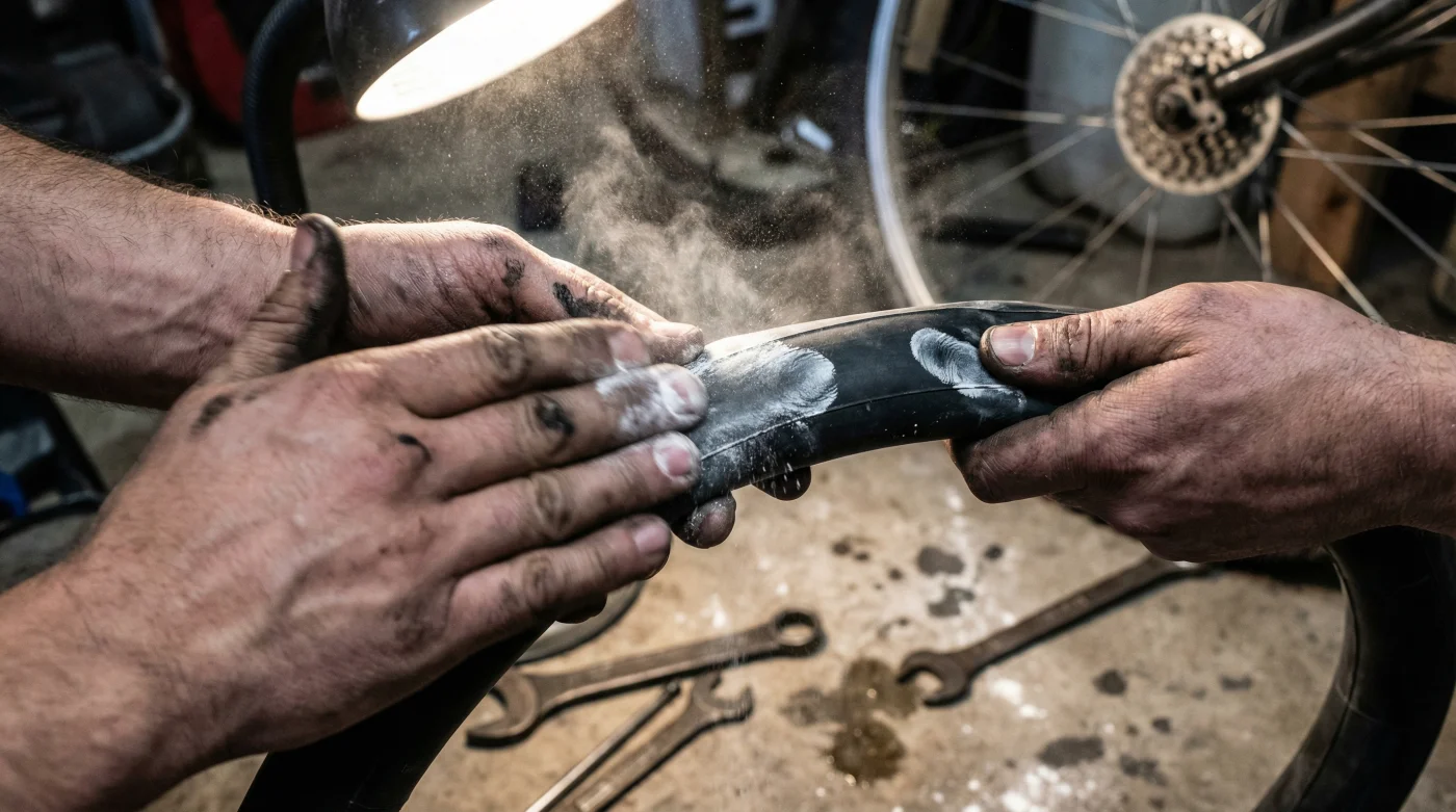 Roberto, un mecánico de 62 años que repara bicicletas en un patio trasero rodeado de bugambilias en Coyoacán, conoce este secreto mejor que nadie. Ha visto miles de ruedas reventadas por dentro. Mientras los ciclistas aficionados gastan fortunas en corazas importadas, Roberto toma una brocha de afeitar vieja y acaricia cada cámara nueva con talco infantil común antes de instalarla. “El hule también respira y suda”, suele decir mientras espolvorea el polvo blanco, frotando la cámara con la misma delicadeza con la que protegería la piel de un bebé contra las rozaduras.