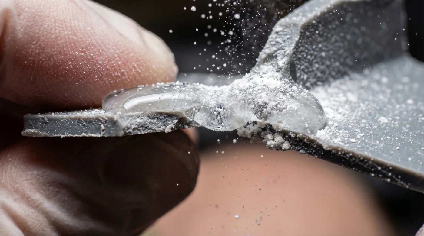Al introducir un polvo blanco y cotidiano, alteras las reglas físicas del adhesivo. El polvo actúa como catalizador alcalino, cortando de tajo el tiempo de espera y solidificando la resina líquida como si fuera plástico duro en un parpadeo. No es un truco de limpieza; es pura manipulación química a tu favor.