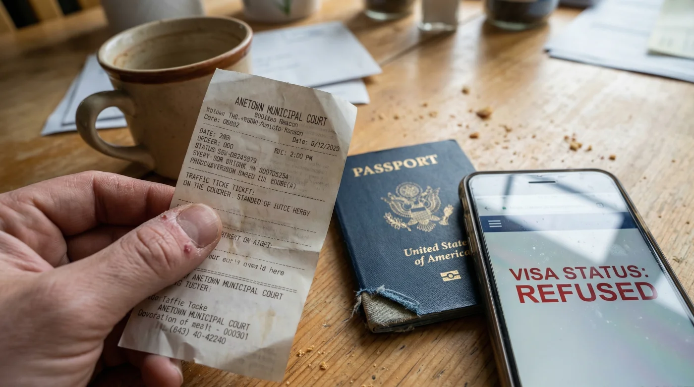 Para entender el peso de este cambio, hay que mirar bajo el cofre de la burocracia estadounidense. Cuando el sistema consular procesa tu solicitud de renovación automática, el algoritmo hace un barrido de tu identidad. Ya no solo busca alertas de Interpol o crímenes graves; ahora busca deuda cívica. Las multas impagas, especialmente aquellas captadas por cámaras automáticas (las famosas “red light cameras” o los peajes de “pay-by-mail”), son enviadas a agencias de cobranza cuando expira el plazo. Ese paso a cobranza es el que levanta una bandera roja en tu perfil migratorio, marcándote bajo sospecha de ignorar las leyes locales del país que te hospeda.