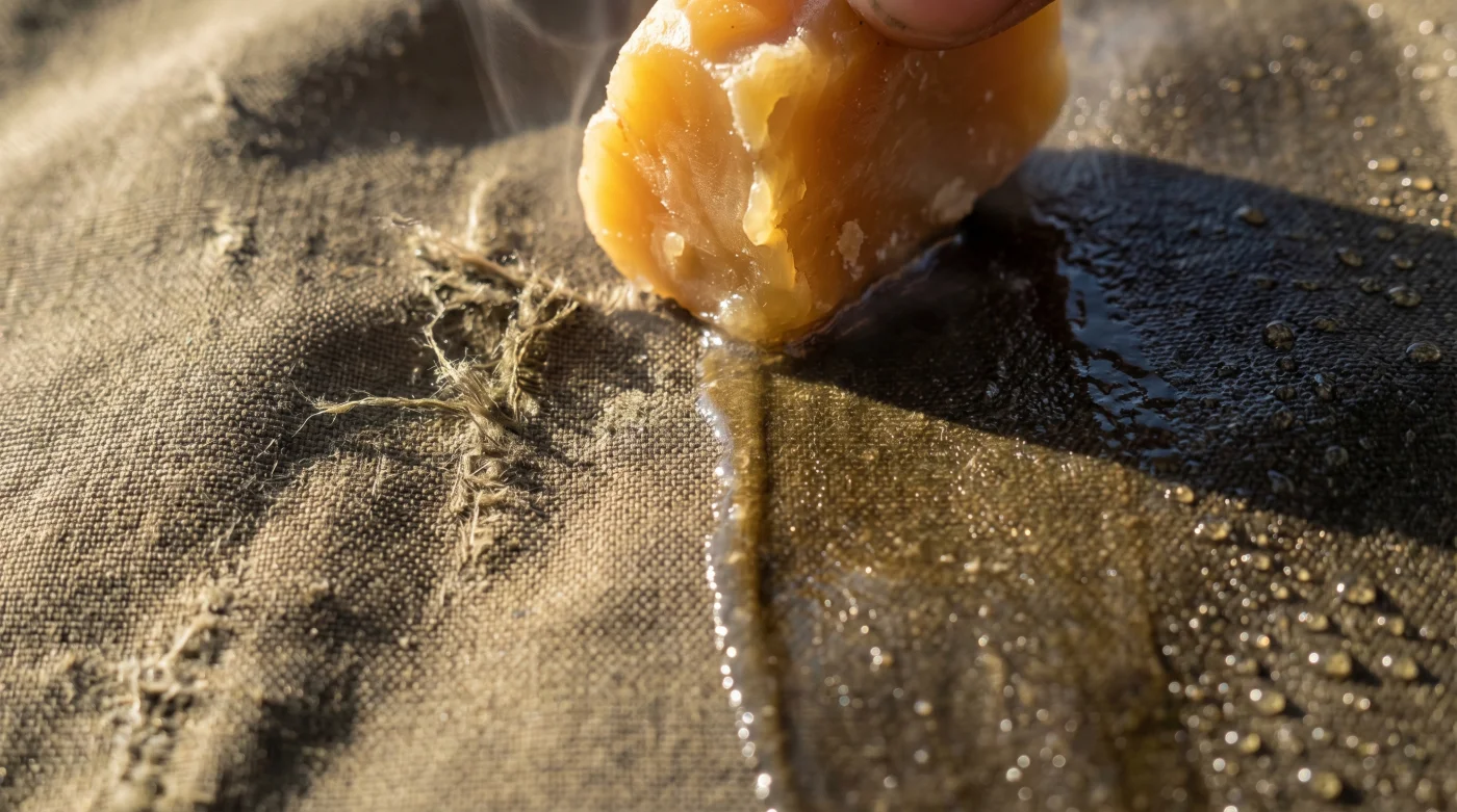 La cera de abejas llevada a temperatura de fusión no cubre tímidamente; satura de manera agresiva y permanente. Se comporta como un cemento capilar orgánico que se adhiere con una tenacidad sorprendente a las tramas del nailon y el poliéster. Este es el verdadero cambio de paradigma que experimentas: dejas de tratar tu valioso equipo como un consumible temporal y comienzas a acondicionarlo como un instrumento de supervivencia que mejora su rendimiento con cada expedición y cada tormenta superada.