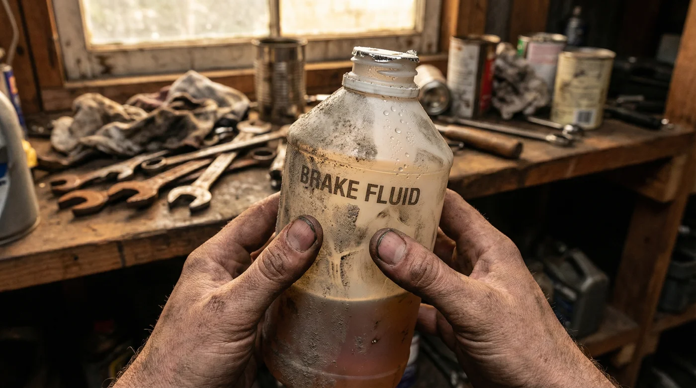 Estás en tu garaje un sábado por la mañana. El calor ya empieza a sentirse pesado y el aire huele a polvo seco con ese leve rastro metálico de herramientas guardadas. Levantas el cofre de tu auto para revisar los niveles antes de agarrar carretera hacia Cuernavaca o bajar las cumbres de Maltrata. Notas que el depósito transparente está un poco por debajo de la línea máxima. Buscas en el estante y ahí está: una botella de líquido de frenos a medio usar, arrinconada desde tu última afinación hace unos ocho meses. Parece inofensiva, lista para sacarte del apuro. Pero al verter ese líquido ámbar, sin saberlo, estás condenando la capacidad de respuesta de tu coche.