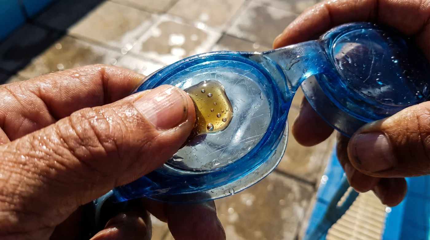 Las piscinas climatizadas y techadas son fábricas de condensación por la falta de circulación de aire. Aquí, necesitas que la capa protectora sea fina pero uniforme. Una sola gota dividida entre ambos ojos es suficiente para rutinas de hora completa. Si usas demasiado, la fricción del agua clorada creará pequeñas burbujas dentro de la mica que distraen tanto como el propio vapor.