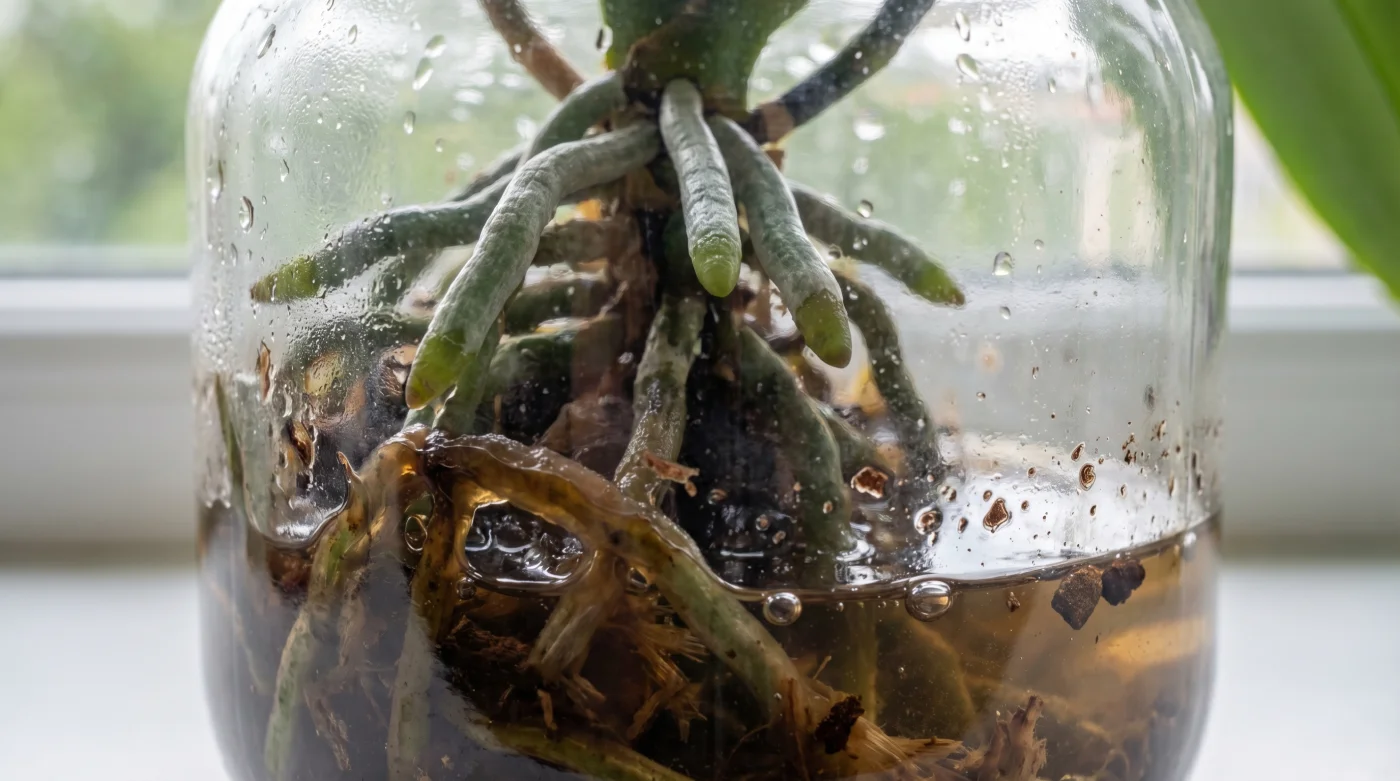 Cuando dejas que la base de la maceta repose sobre un charco de agua permanente, estás ahogando sus vías respiratorias de forma implacable. Si el velamen permanece sumergido, las células se saturan, mueren por falta de oxígeno en cuestión de días y se convierten en el caldo de cultivo perfecto para hongos destructivos.