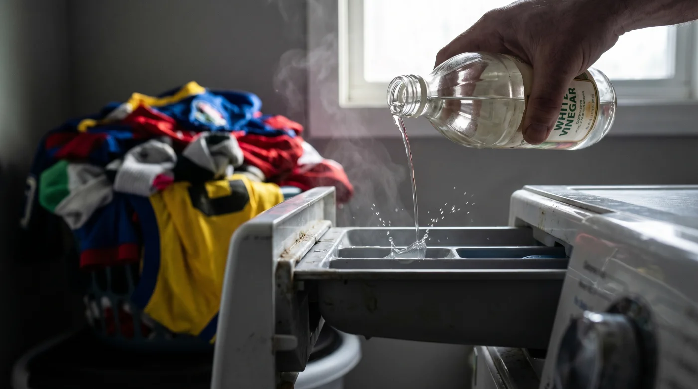 El Kit Táctico: Temperatura máxima de 30°C. Dosis exacta de vinagre: 120 ml por carga mediana. Suavizante: Cero absoluto. Frecuencia de uso: En cada lavado de tu ropa deportiva.