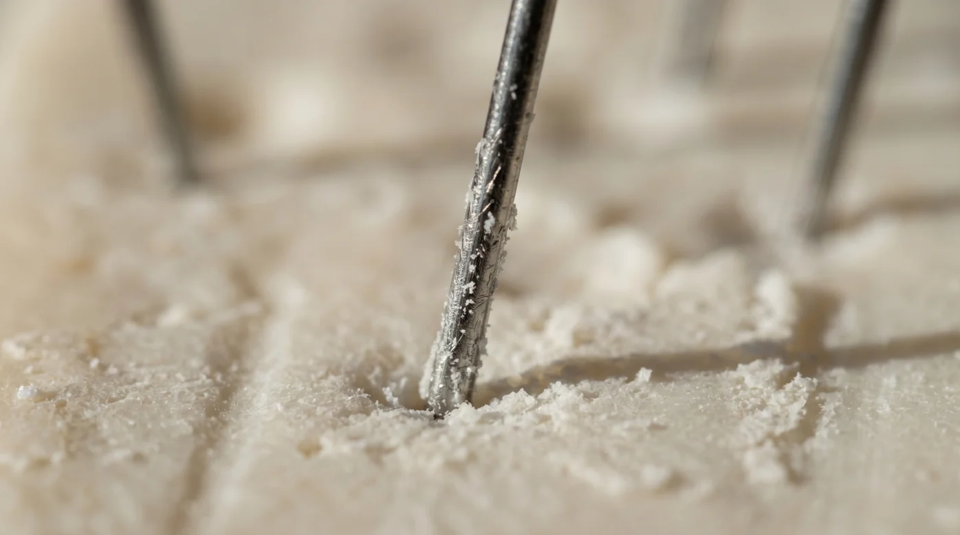 No se trata de apuñalar la pastilla como si buscaras desahogar el estrés acumulado durante el día. Este sencillo proceso requiere una atención calmada. Siéntate en tu mesa con buena luz y observa la punta de tus alfileres bajo una lámpara directa; aquellos que parezcan pequeños ganchos doblados deben desecharse, pero los opacos y ásperos se quedarán contigo.