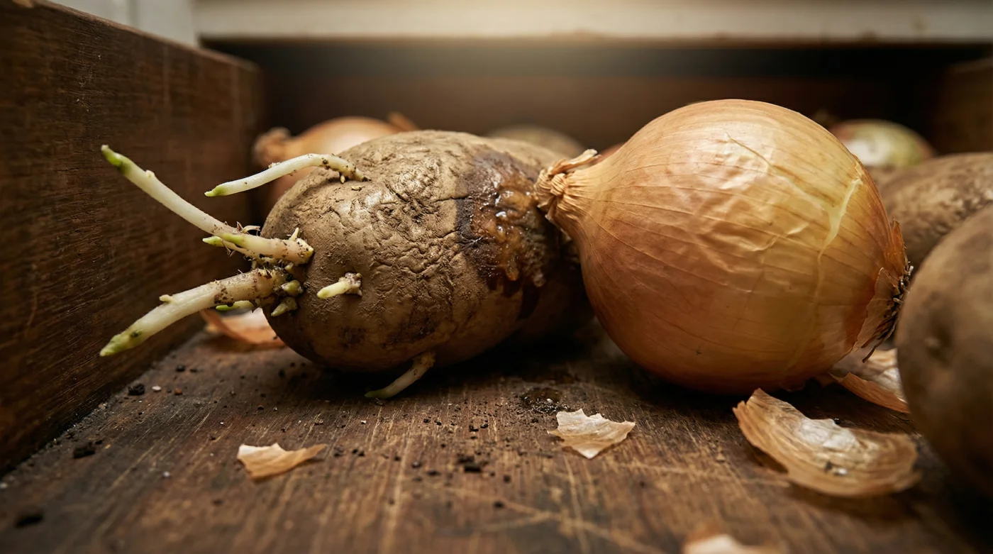 ¿Por qué se pudren tan increíblemente rápido mis papas? Porque al guardarlas compartiendo espacio con cebollas enteras, el gas etileno que estas últimas emiten de forma natural funciona como una alarma que acelera el metabolismo de la papa, forzándola a brotar y arruinando su estructura interna en cuestión de días.