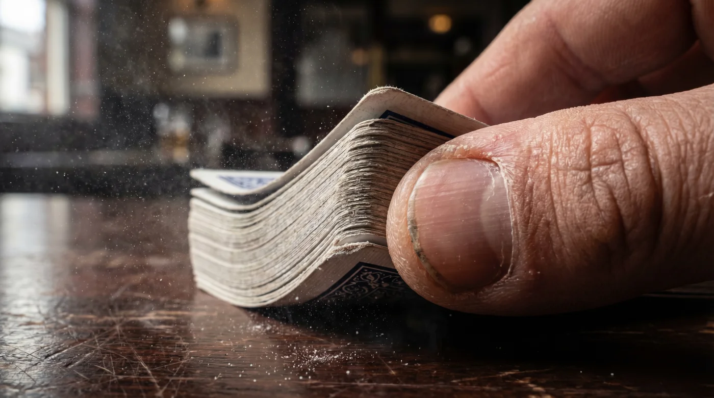 Pero el verdadero culpable no es la suciedad incrustada, sino una simple cuestión de tensión superficial. La humedad ambiental y los aceites microscópicos crean un vacío entre carta y carta. Piensa en el esfuerzo monumental que requiere separar dos vasos de vidrio mojados que se han apilado. Al frotar talco de bebé sobre la baraja, no estás limpiando el material per se, estás introduciendo millones de micro-rodamientos invisibles entre cada hoja.