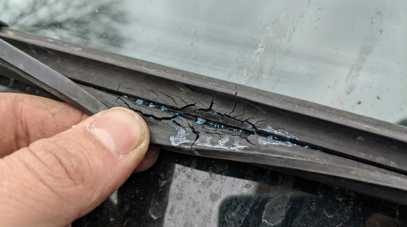 - Gomas de limpiaparabrisas sufren grietas tempranas limpiándolas con líquido lavacristales comercial.
