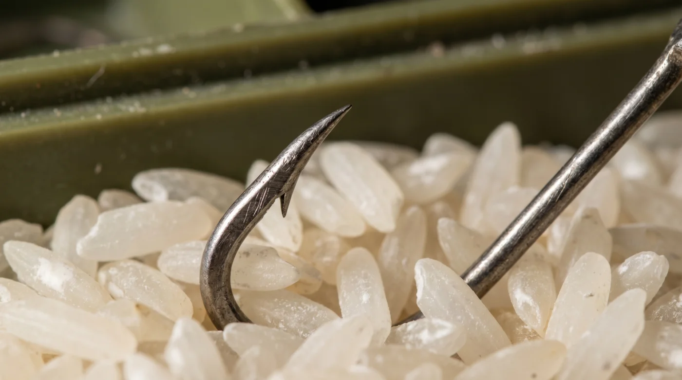 La clave no es sellar el plástico con más fuerza, sino darle al interior algo que absorba esa “respiración”. Cubrir tus anzuelos con granos secos en tu caja altera por completo la física del entorno. El arroz actúa como una legión de minúsculas esponjas que secuestran la humedad ambiental antes de que pueda condensarse sobre el acero.