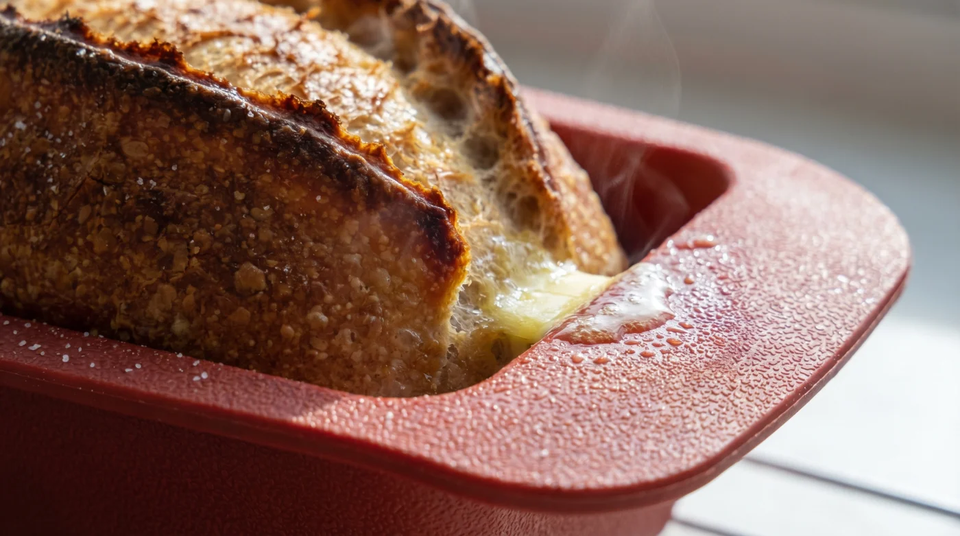 El material flexible de grado alimenticio no atrapa el pan por fricción como lo haría el aluminio raspado, sino por un poderoso efecto de vacío. Mientras el agua de la masa se evapora y se convierte en gas, la estructura del pan se expande y abraza el recipiente de una forma asfixiante, creando un sello hermético. Romper la tensión superficial requiere un agente físico que interrumpa ese contacto directo entre las moléculas de la masa y la superficie sintética.