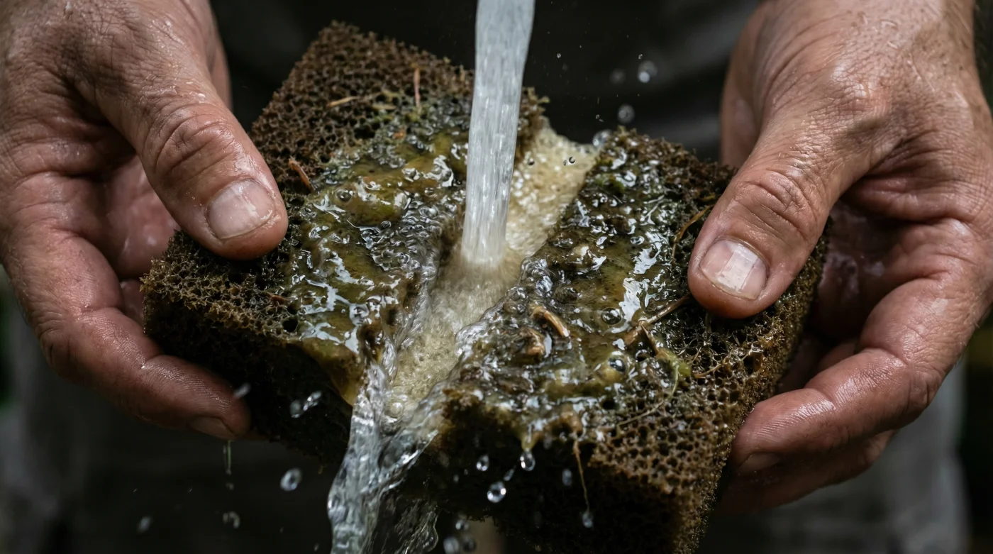 Abres la llave. El chorro de agua fría golpea las fibras, arrastrando toda la suciedad marrón por el desagüe. Exprimes el material con fuerza hasta que el agua sale transparente y la esponja vuelve a lucir impecable, casi idéntica a cuando la compraste en el mercado de peces. Sientes una profunda satisfacción al devolverla a su lugar, creyendo haber hecho lo correcto, sin tener la menor idea de que acabas de firmar la sentencia de tu pequeño ecosistema doméstico.