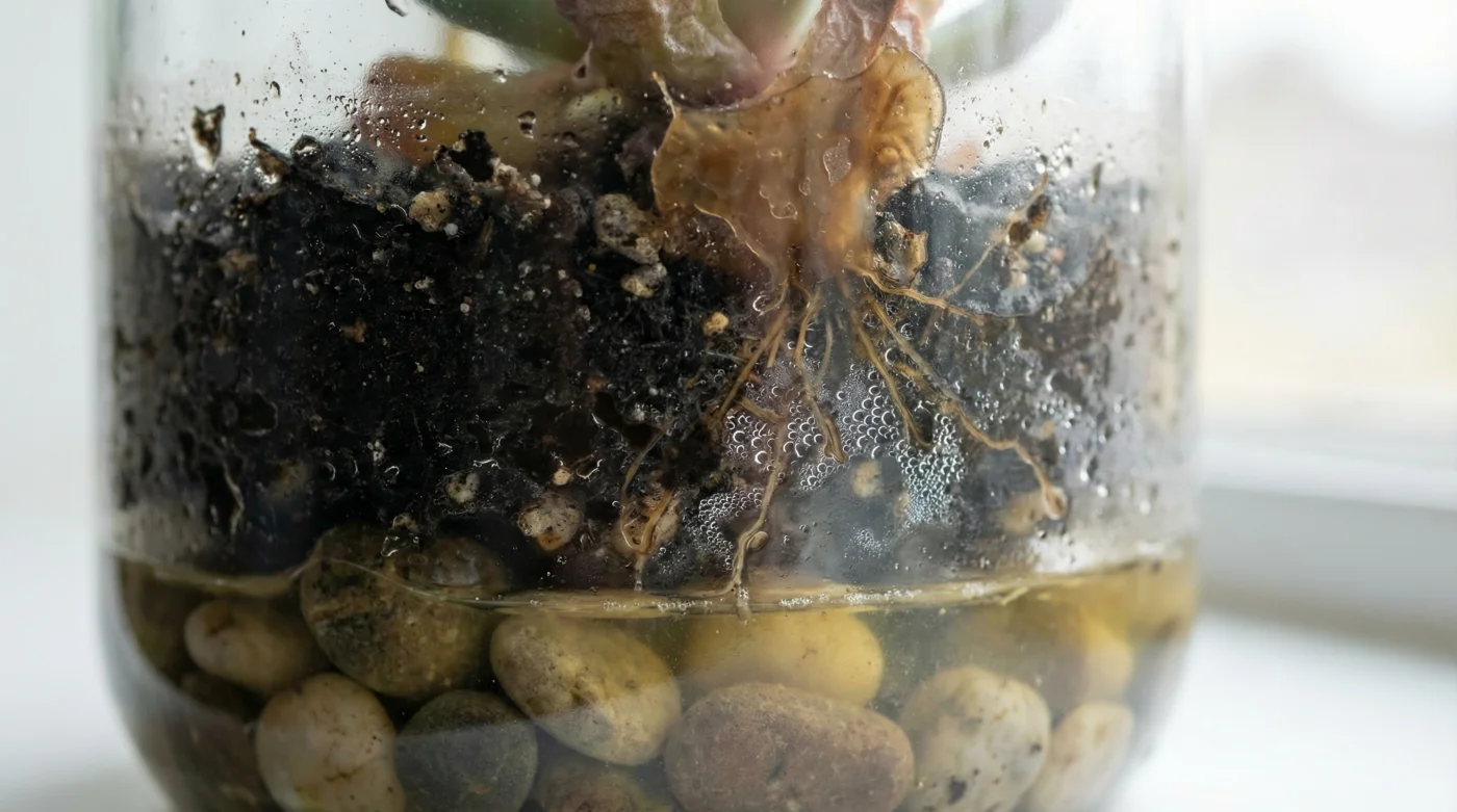 Al colocar grava, trozos de maceta rota o canicas al fondo, no estás creando una vía de escape rápida. Estás obligando a la tierra húmeda a detenerse más arriba en la maceta, empujando esa zona de saturación permanente directamente contra las raíces sensibles de tu suculenta. En lugar de alejar el peligro, lo subes en ascensor.