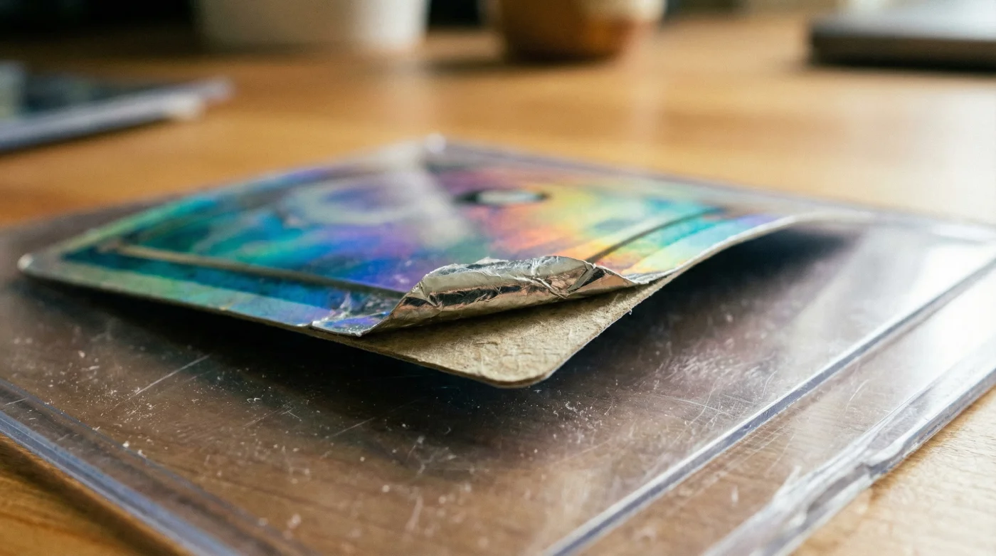 | Separación de capas (Delaminación) | El cartón tira del foil metálico que mantiene su tamaño original. | Evita que la carta sea considerada ‘dañada’ en evaluaciones profesionales. |
