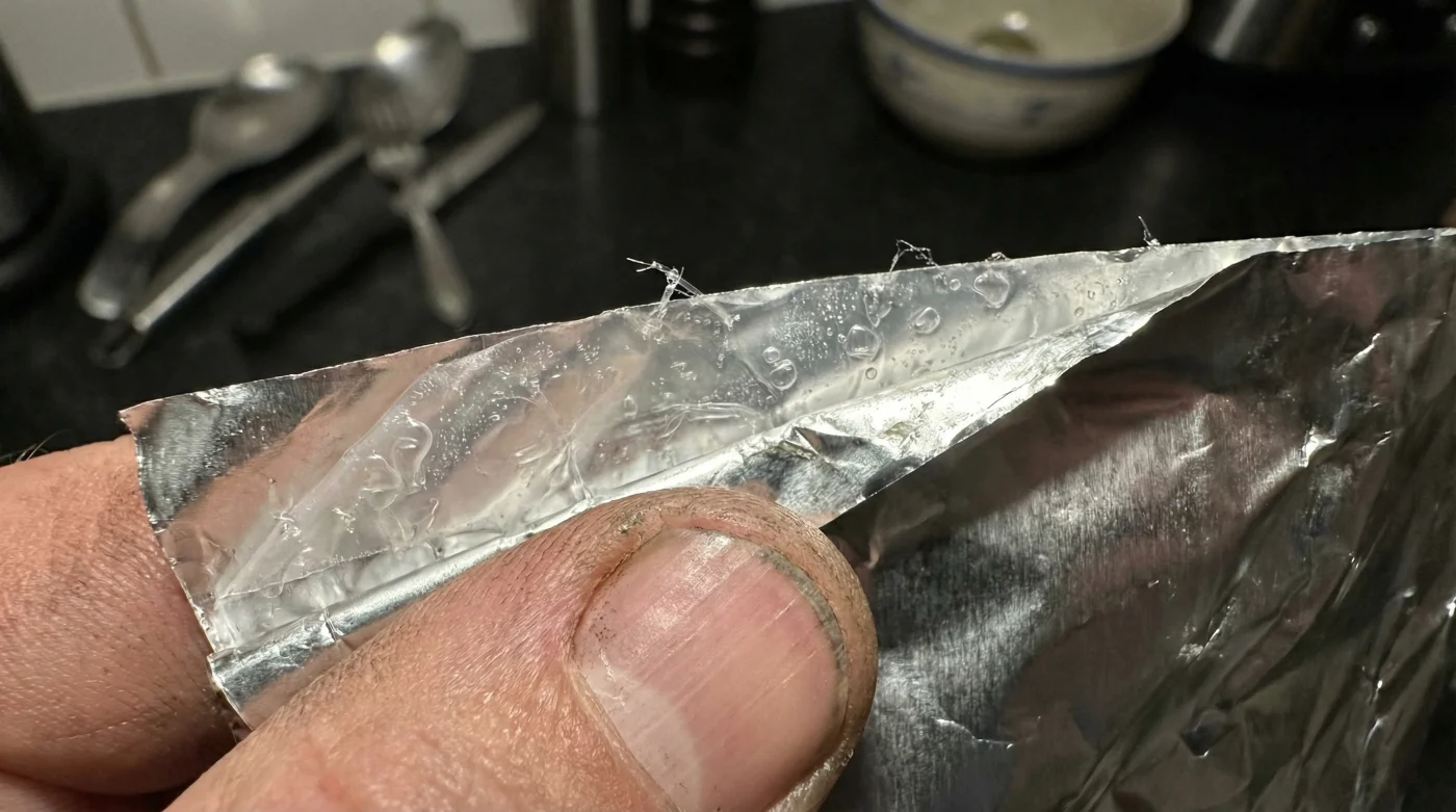 Revisa la textura del doblez con tus propios dedos. El aluminio puro guarda la forma como un pliegue de cartón rígido; si notas que tiende a rebotar ligeramente o intenta recuperar su forma original, estás frente a un material mezclado con polímeros.
