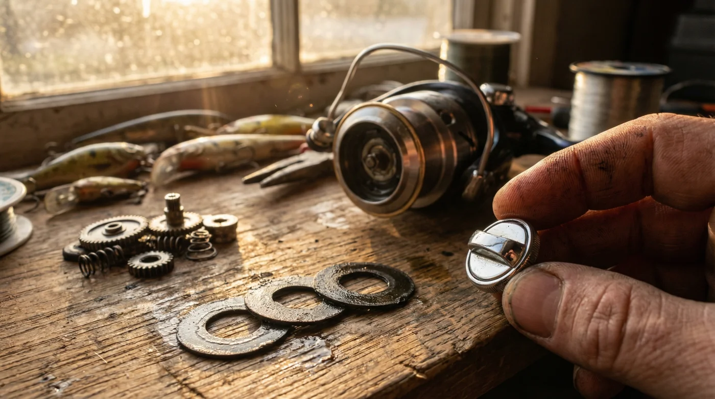 Tu caña pasa largas temporadas descansando en la pared esperando el próximo puente o las vacaciones largas. Esa compresión ininterrumpida actuando en la oscuridad altera la geometría molecular del carbono o aplasta el fieltro hasta dejarlo como papel de china. Pierdes la progresión suave por completo. La próxima vez que intentes regular la tensión, el carrete pasará de estar totalmente libre a estar completamente bloqueado, sin puntos medios.