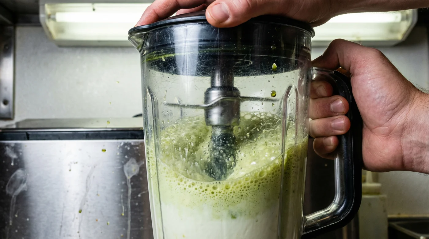 Abres el refrigerador un martes por la tarde y decides preparar algo fresco. Sobre la encimera tienes hojas de lechuga recién lavadas, un diente de ajo perlado, mostaza antigua y esa botella de aceite de oliva extra virgen por la que pagaste casi 300 pesos. Buscas una textura densa y profesional, así que viertes todo en el vaso de cristal y enciendes el motor a máxima potencia. El ruido inunda la cocina mientras observas cómo el líquido se transforma velozmente en un verde pálido casi blanquecino.